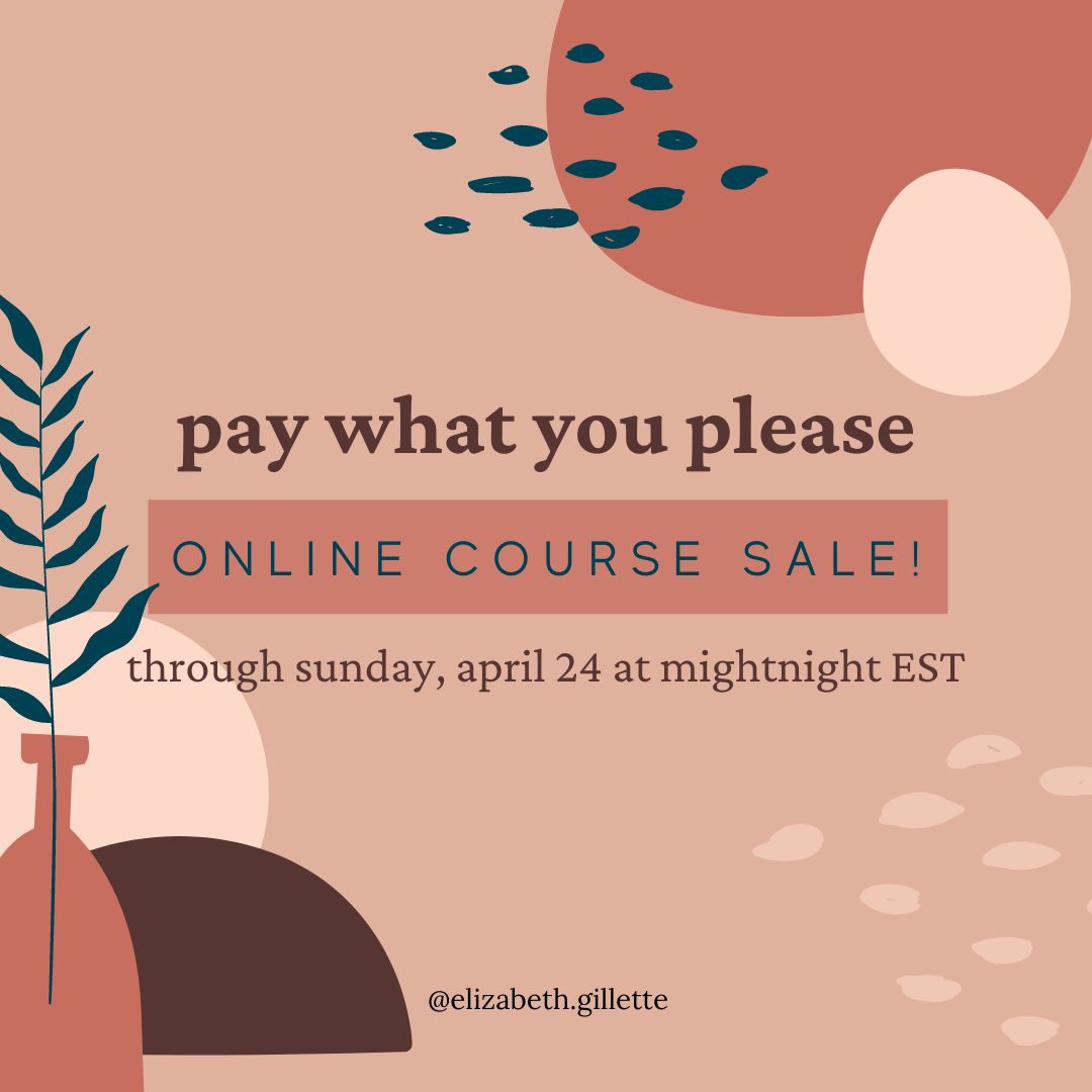 Here's how it works: you can purchase one of both of my online courses for up to 50% off this week! I'm including the discount codes below--choose the one that works for you. You have lifetime access to the course and it's self-guided, so even if you aren't ready to get started, you can have it in your back pocket when the timing is right.
